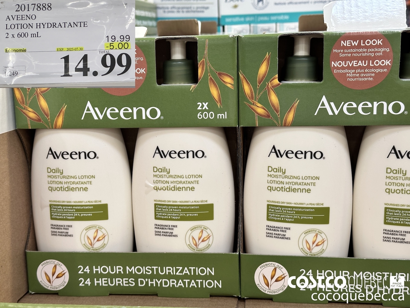 AVEENO LOTION HYDRATANTE 2 x 600 mL.