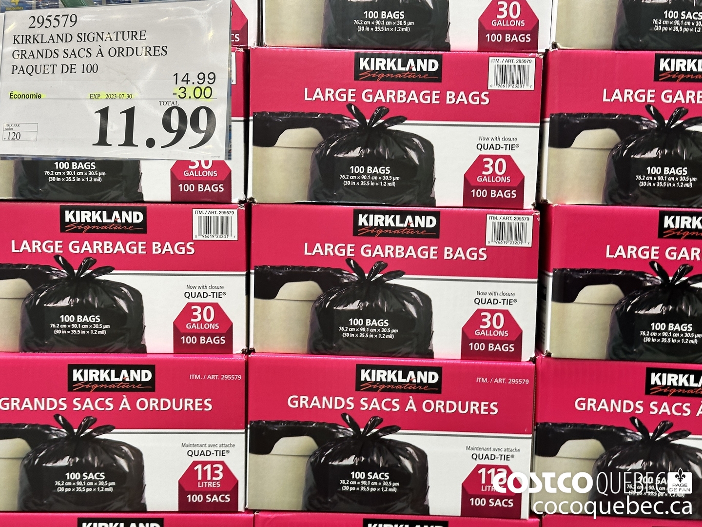 KIRKLAND SIGNATURE GRANDS SACS A ORDURES PAQUET DE 100