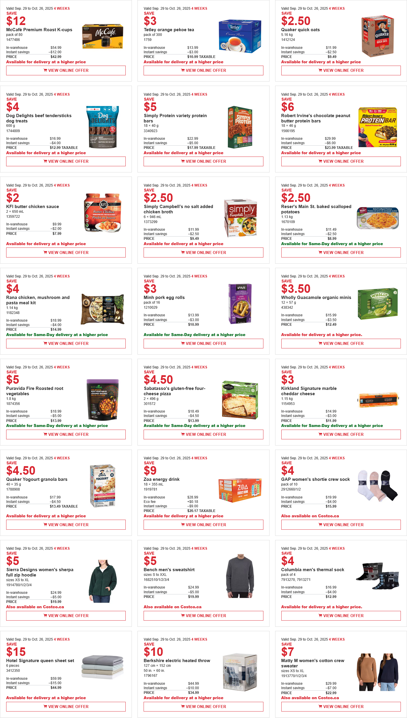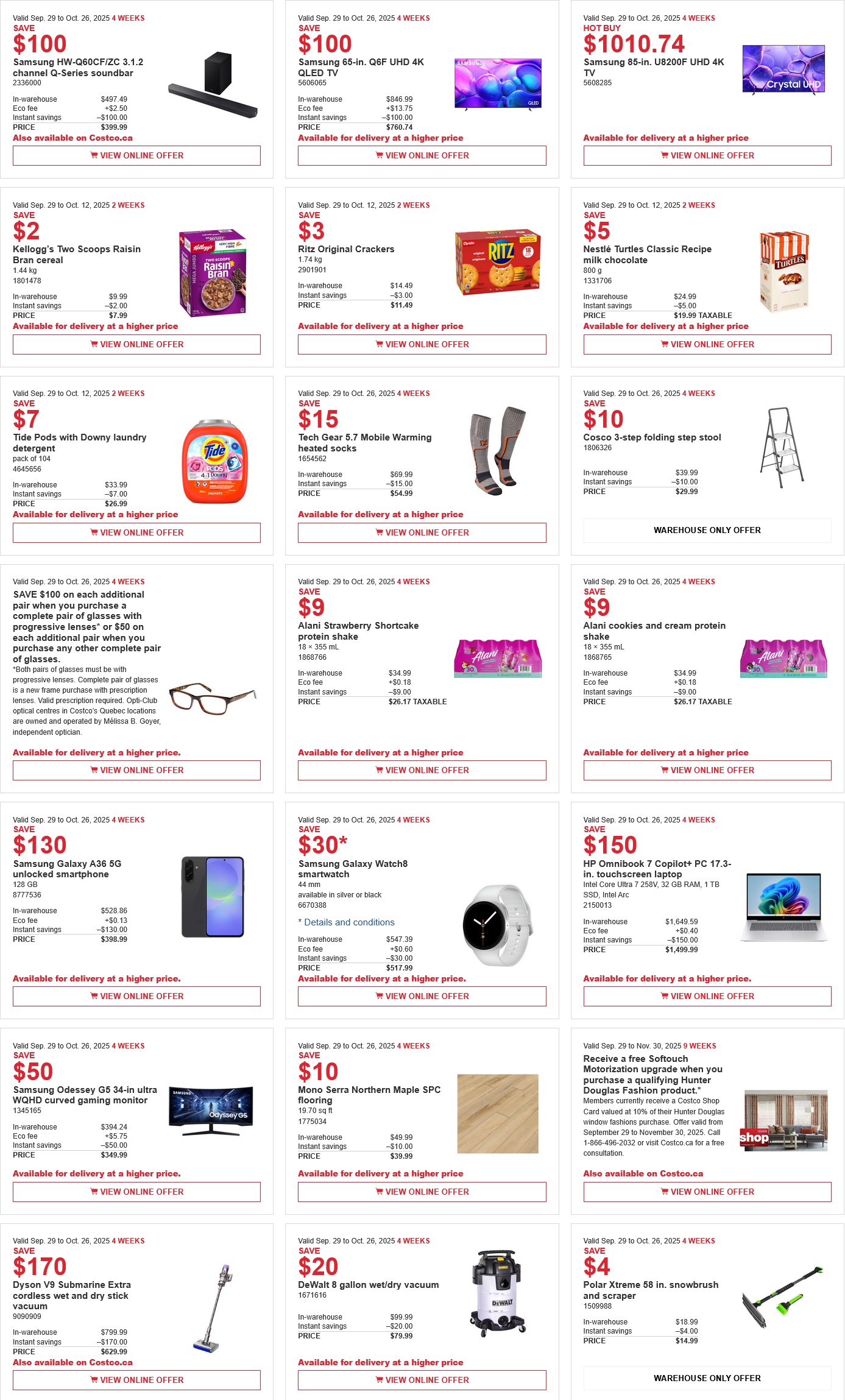 Ventes de circulaires Costco/Costco Flyer Sales 29 sept au 26 oct 2025