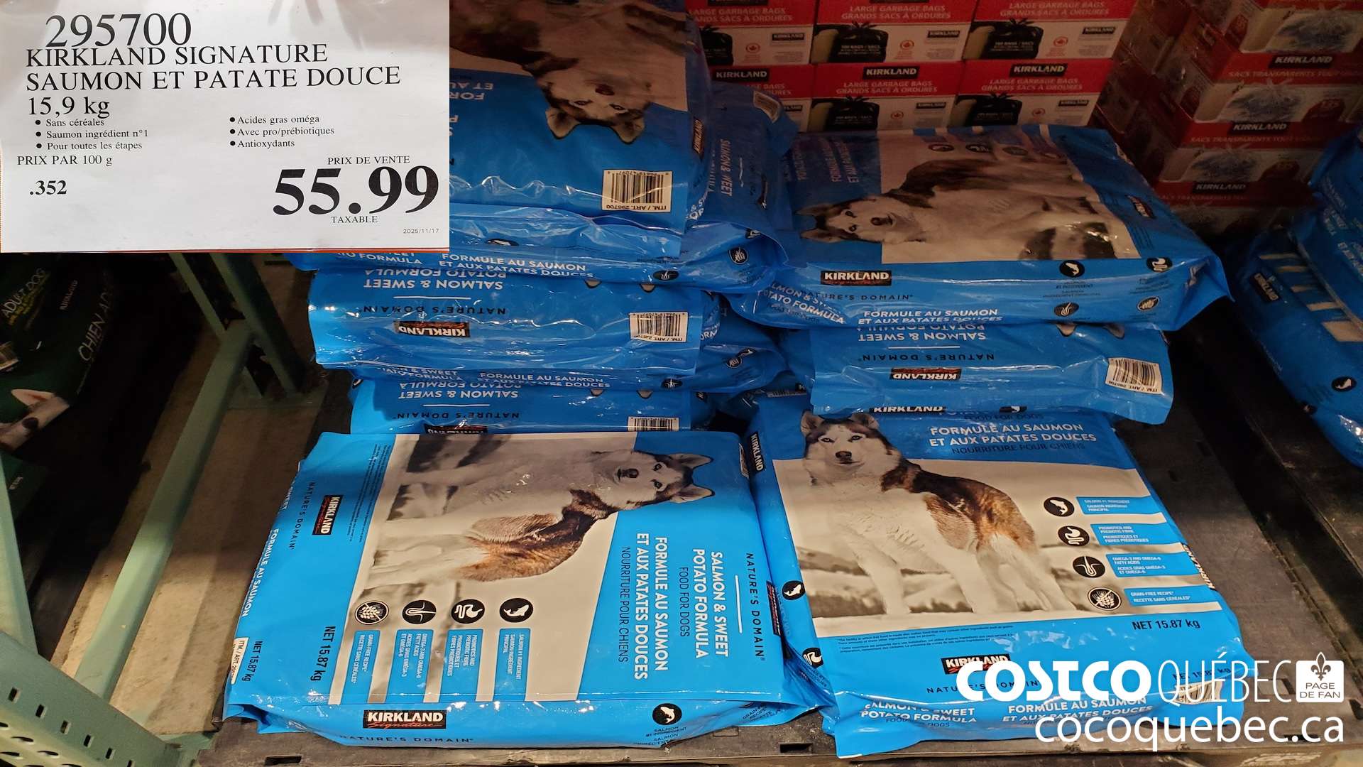 295700 KIRKLAND SIGNATURE NATURE'S DOMAIN SAUMON 15, 9 9 g.. Posted Savings Expiry Price 2025-11-21 $55.99 2023-11-10 $54.99 2023-04-10 $54.99