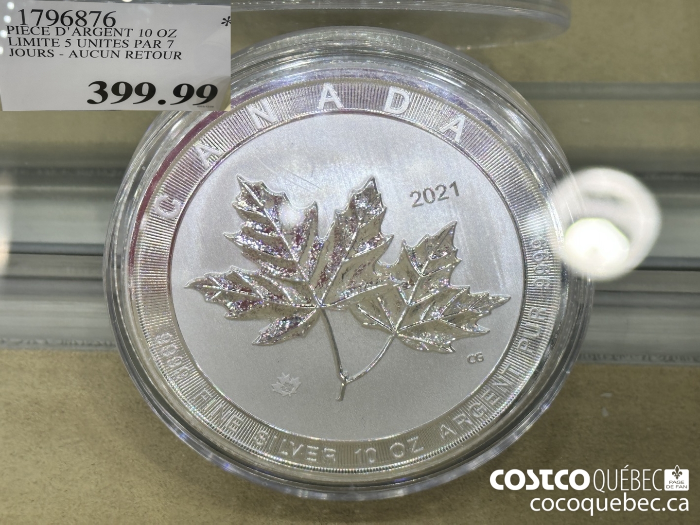 1796876 PIECE D'ARGENT 10 OZ LIMITE 5 UNITES PAR 7 JOURS - AUCUN RETOUR Posted Savings Expiry Price 2023-12-11 $399.99
